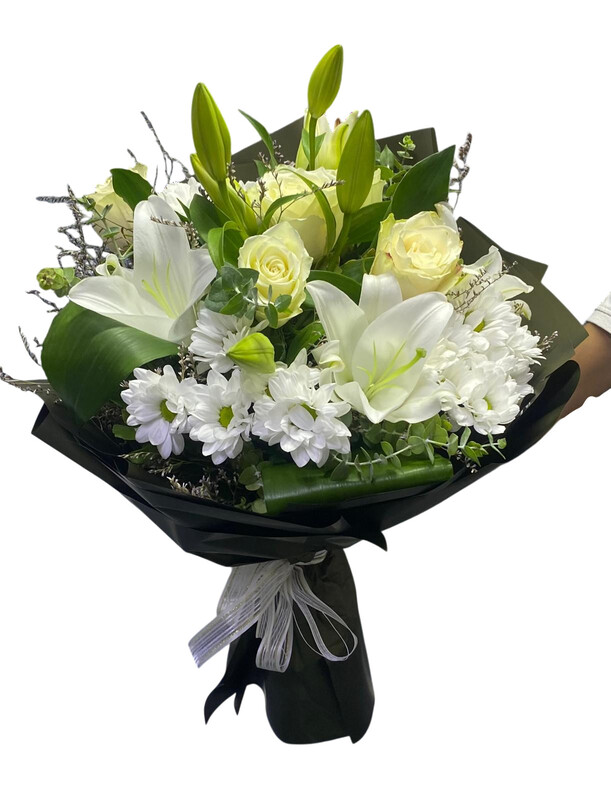 Kokulu lilyumlar, asil güller ve doğal papatyaların zengin birlikteliği.