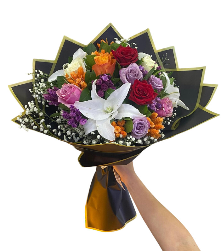 Mis kokulu lilyumlar ve canlı renkli güllerin göz alıcı şöleni.