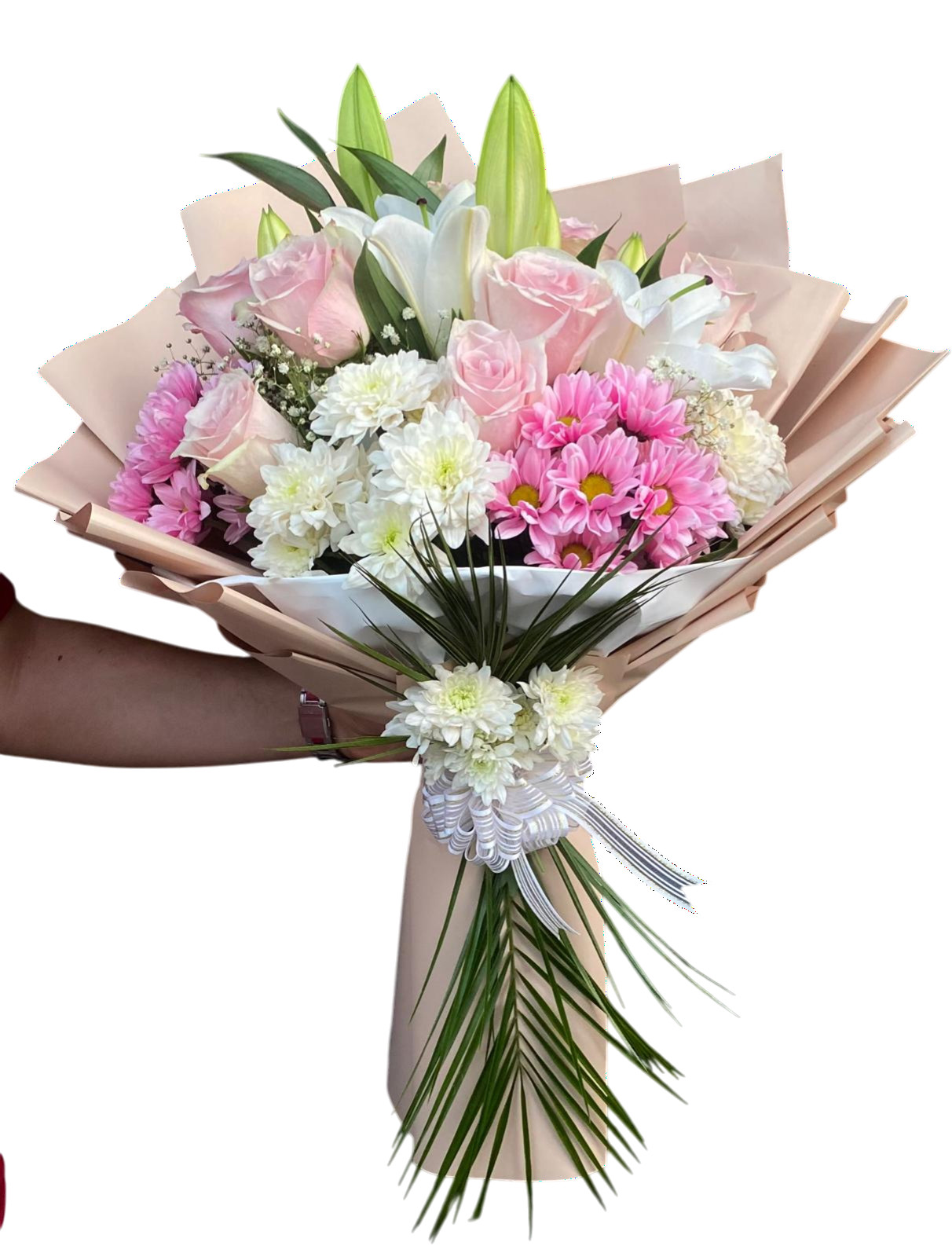 Sade ve zarif bir duruş sergileyen, özel olarak tasarlanmış çiçek buketi.