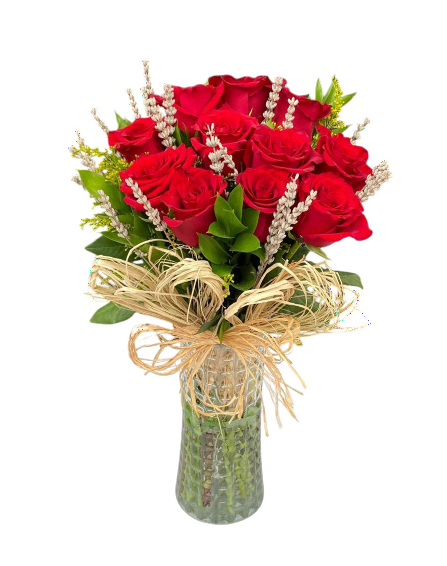 Klasik ve vazgeçilmez bir tercih: Zarif vazoda taptaze kırmızı güller.